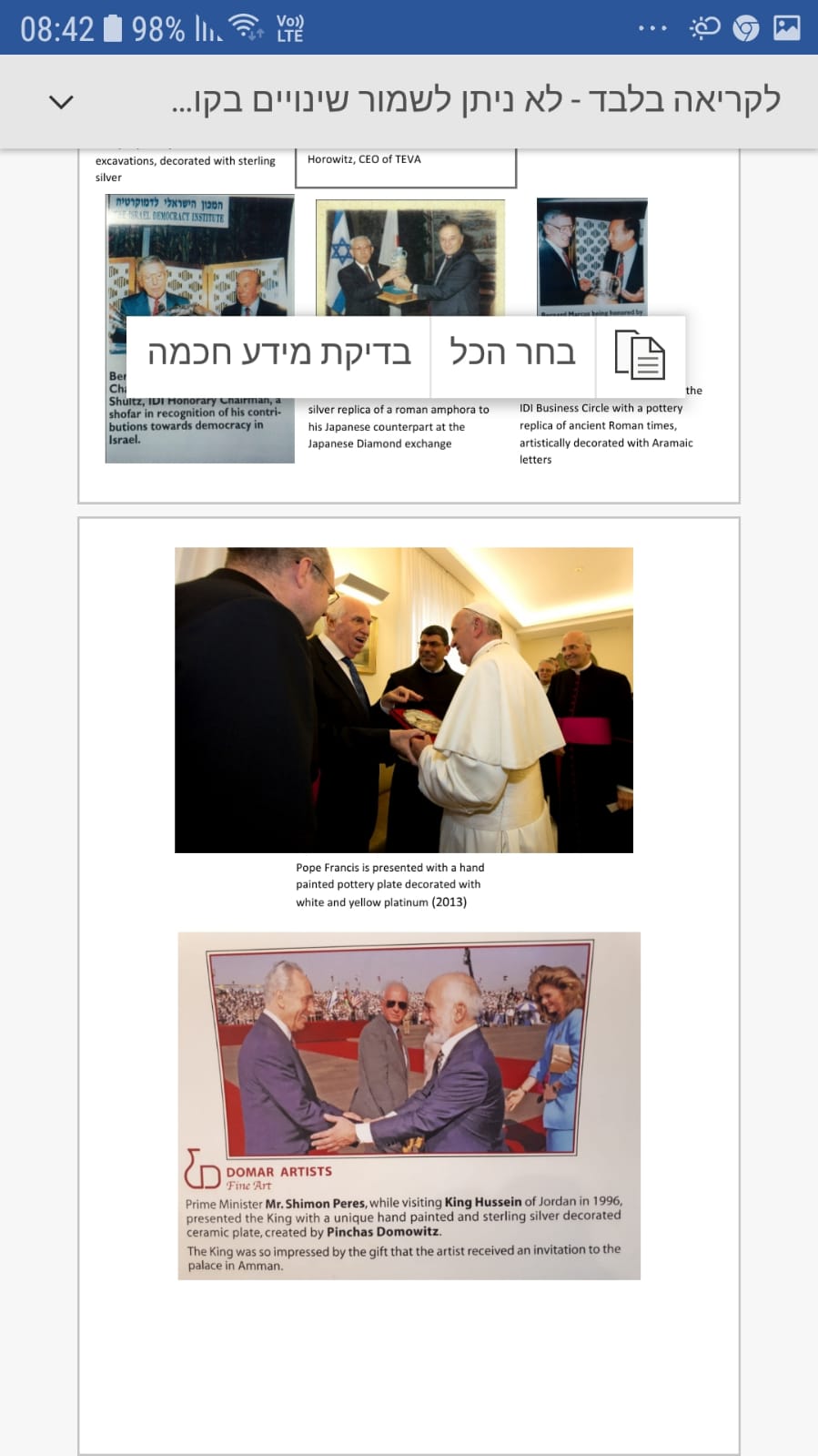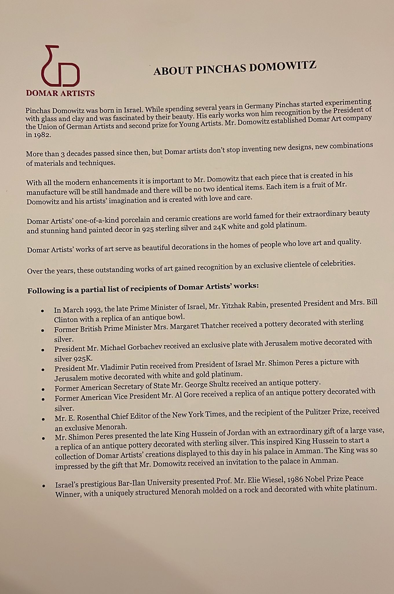 פיני דומוביץ אמן בינלאומי חפצי יודאיקה משולבים בזהב כסף וזכוכית.
