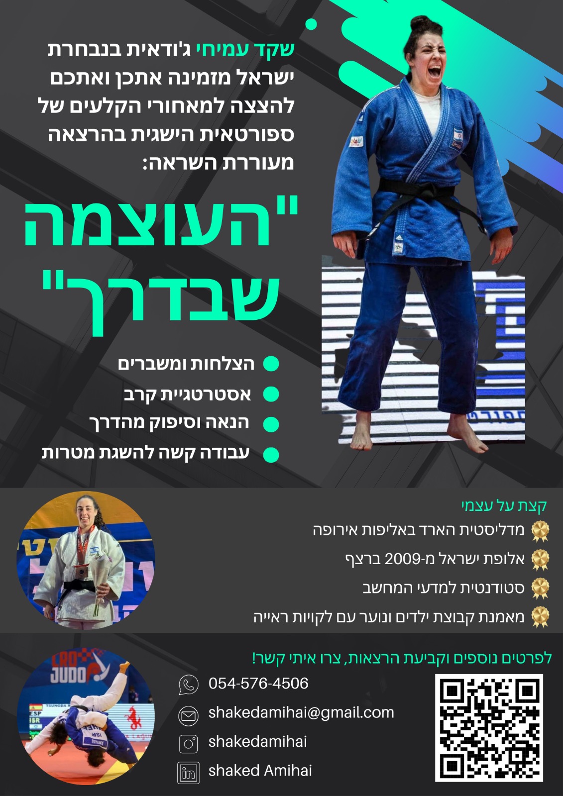 שקד עמיחי, חברת נבחרת ישראל בג׳ודו וחברת המועדון של אורן סמדג׳ה, אלופת ישראל ומדליסטית באליפות אירופה, משתפת את הסיפור האישי שלה – מסיפור של פציעה, כאב וניתוח שהשבית אותה, ועד לזכייה מפתיעה במדליה בינלאומית בתחרות הראשונה אחרי שנה וחצי בחוץ.